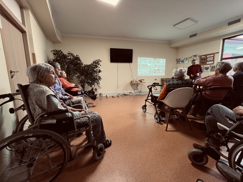 Z wielkim zaciekawieniem nasi podopieczni wysłuchali prezentacji, rozmawiali i wspominali dawne gry i zabawy, w które lubili się bawić jak byli dziećmi. Fajnie było powspominać młodzieńcze lata! ![]()