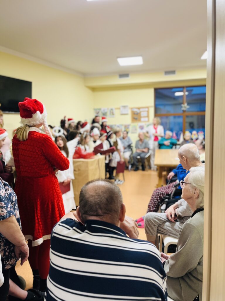 Podczas tej niecodziennej wizyty dzieci zaprezentowały również występ – wiersze, piosenki, życzenia. ![]()