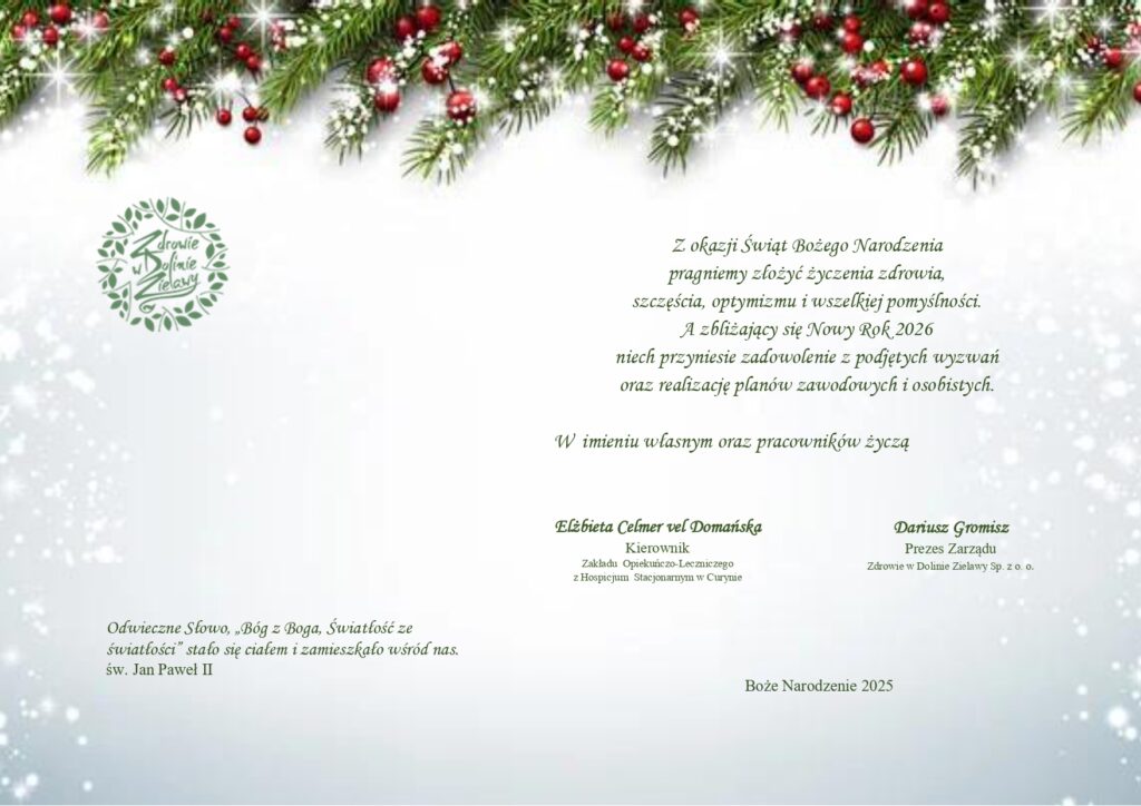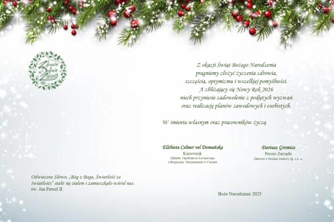 Z okazji Świąt Bożego Narodzenia oraz nadchodzącego Nowego Roku 2026 składamy najserdeczniejsze życzenia wszelkiej radości, pomyślności i szczęścia.