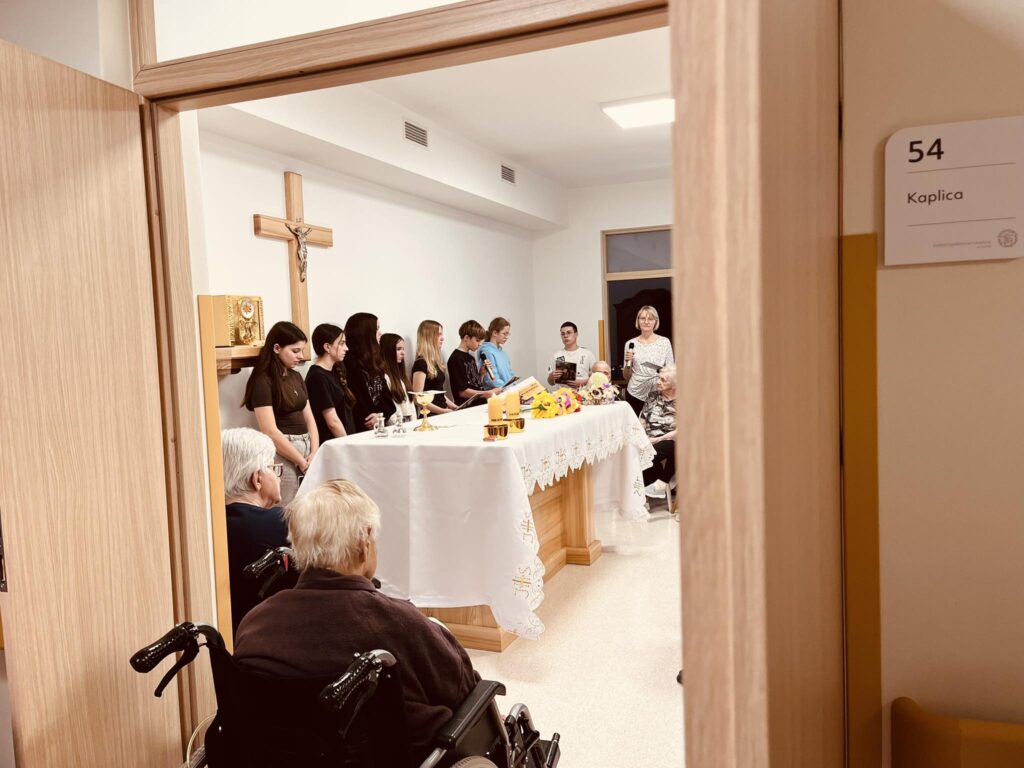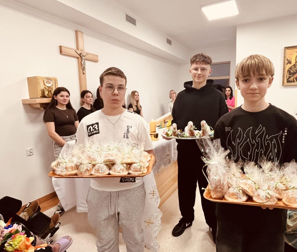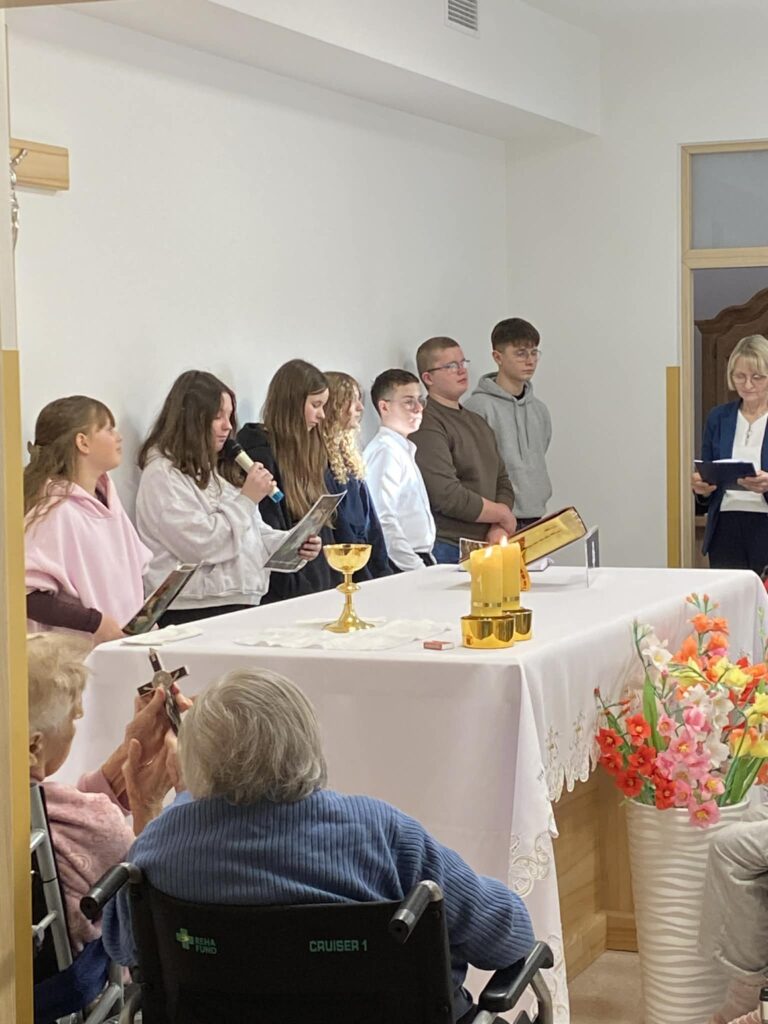 Z całego serca pragniemy wyrazić naszą wdzięczność Księdzu Proboszczowi Jackowi Seredzie oraz uczniom i nauczycielom – Pani Ewie Biełuszka i Pani Teresie Filipczak ze Szkoły Podstawowej w Wisznicach, za cotygodniowe prowadzenie Drogi Krzyżowej w naszym zakładzie wspólnie z pacjentami.
